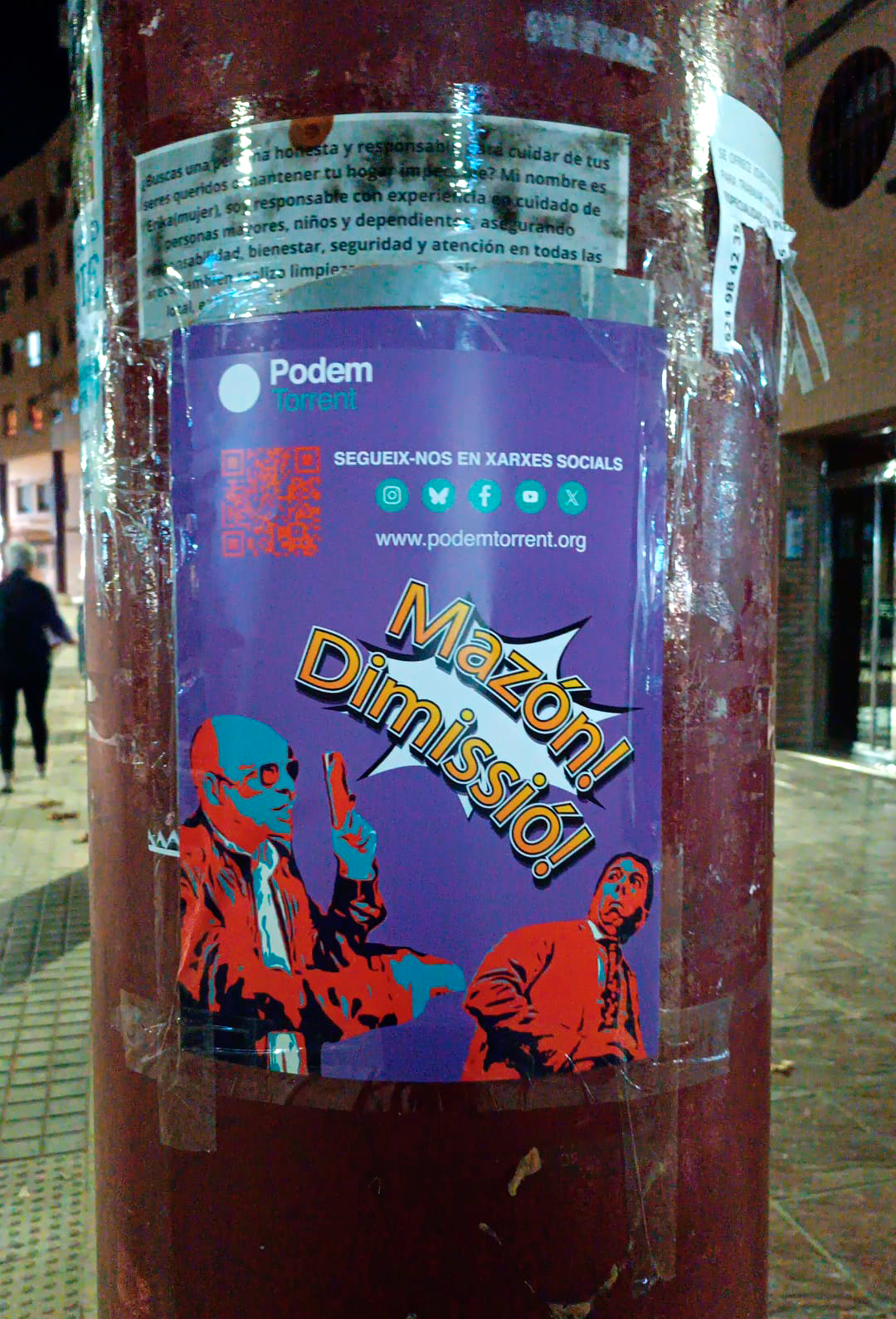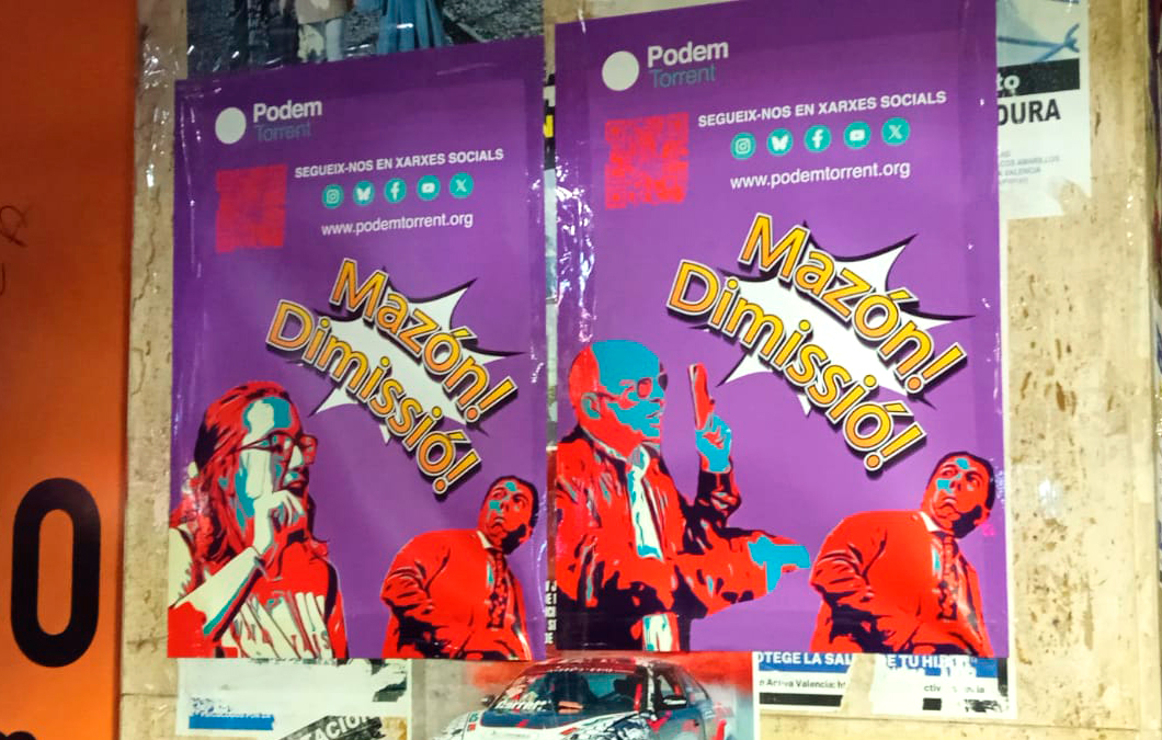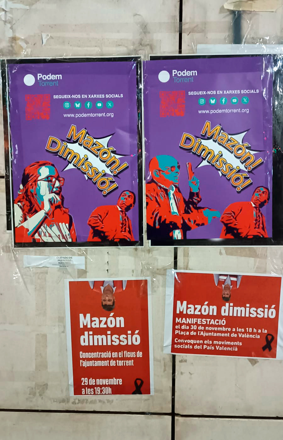 Militantes de Podem Torrent han llevado a cabo un nuevo escrache contra Carlos Mazón, denunciando su negligencia en la gestión pública, que dejó más de 220 víctimas a su paso.